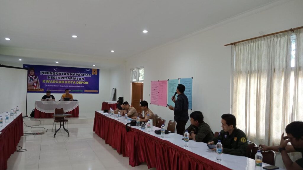Depok, 24 November 2024 – Kwartir Cabang Gerakan Pramuka Kota Depok menyelenggarakan kegiatan Peningkatan Kapasitas Kesekretariatan pada 22-23 November 2024 di Kinasih Resort, Depok. Kegiatan yang diikuti oleh sekretaris kwartir ranting se-Kota Depok beserta staf ini dibuka langsung oleh Ketua Kwarcab Kota Depok, Kak Nina Suzana, S.Sos., M.Si dan didampingi Sekretaris Kwarcab Kota Depok, Kak Syaiful Hidayat, S.Ikom., M.Si (Han).